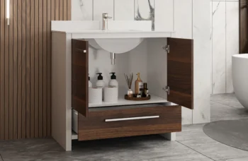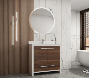 Bergamo Cairo Vanity Floor Mount Bathroom Cabinet with Sink – Walnut & White