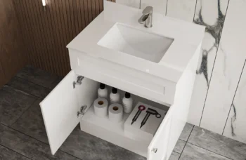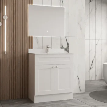 Bergamo Mumbai Vanity Floor Mount Bathroom Cabinet with Sink – Matte White