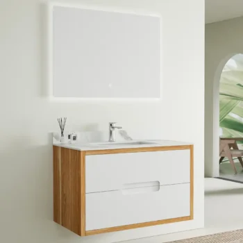 Bergamo Tokyo Vanity Wall Mount Bathroom Cabinet with Sink – Oak & White