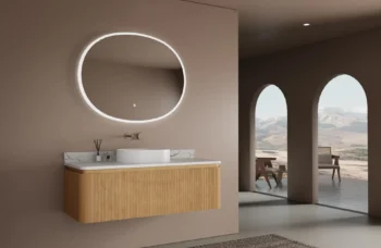 Bergamo Athens Vanity Wall Mount Bathroom Cabinet with Integrated Sink – Natural Oak & White Marble Top