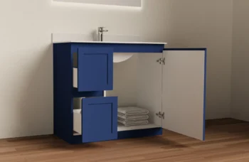 Bergamo Boston Vanity Floor Mount Bathroom Cabinet with Sink – Matte Navy Blue