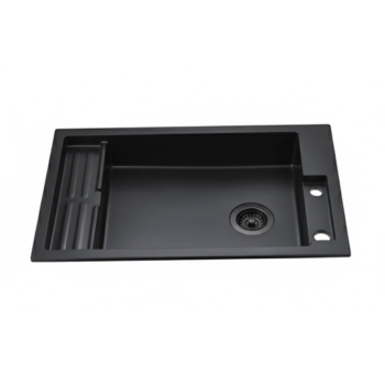 Bosco Linear Granite Series 222030 Undermount/Drop‑In Single‑Bowl Sink – Integrated Drainboard – Black