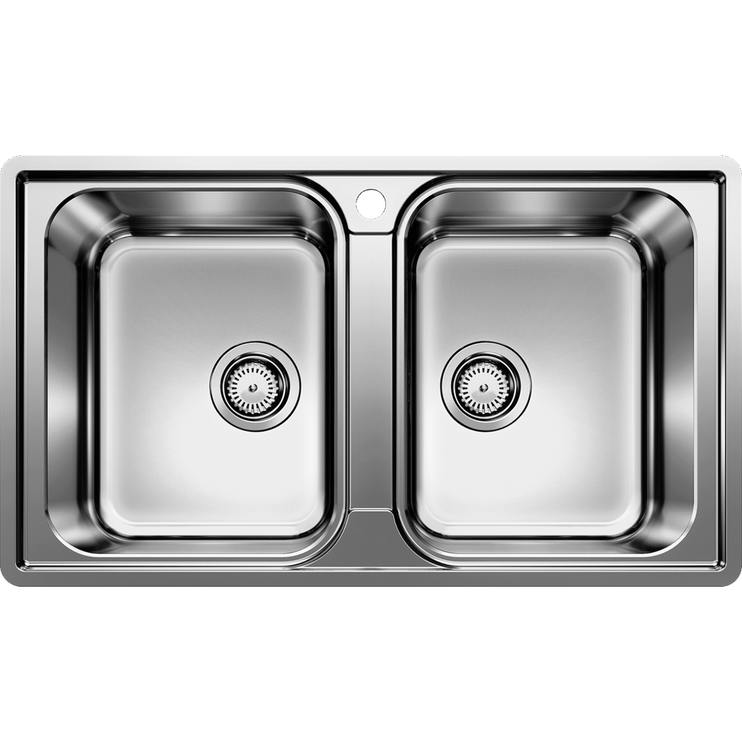 - Modern linear shape with two spacious bowls for maximum capacity