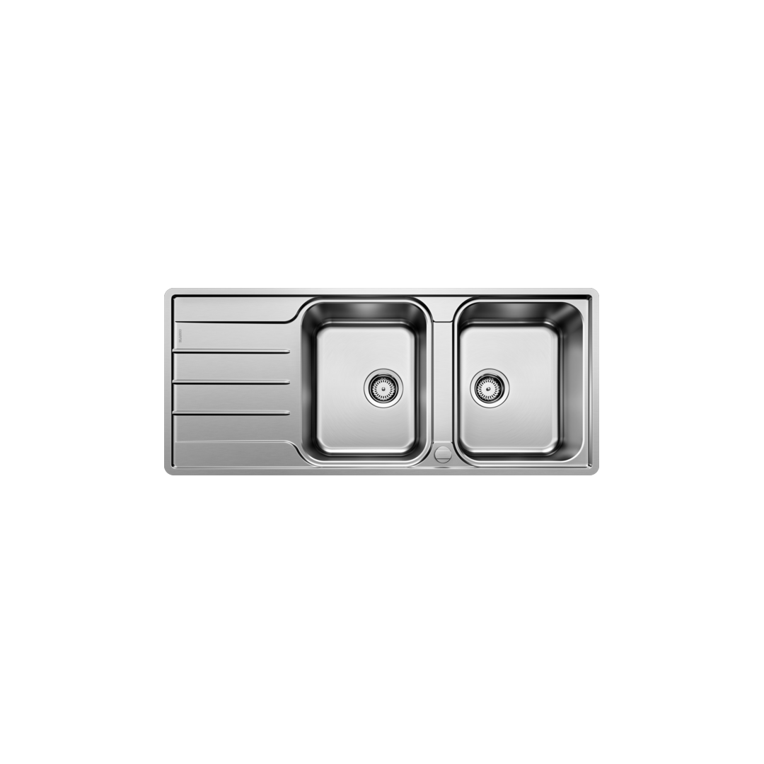 - Modern linear design with double bowls for maximum bowl capacity