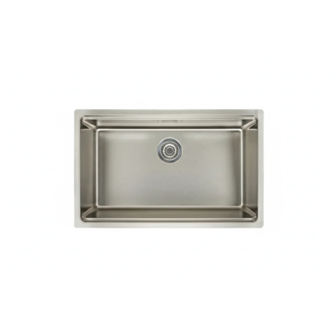A 20mm radius corner design delivers a sleek, contemporary look while making the sink easier to clean. The multi‑level interior creates a lip for accessories, expanding prep space and improving workflow. Its brushed stainless steel finish resists scratches and maintains a professional appearance over time.