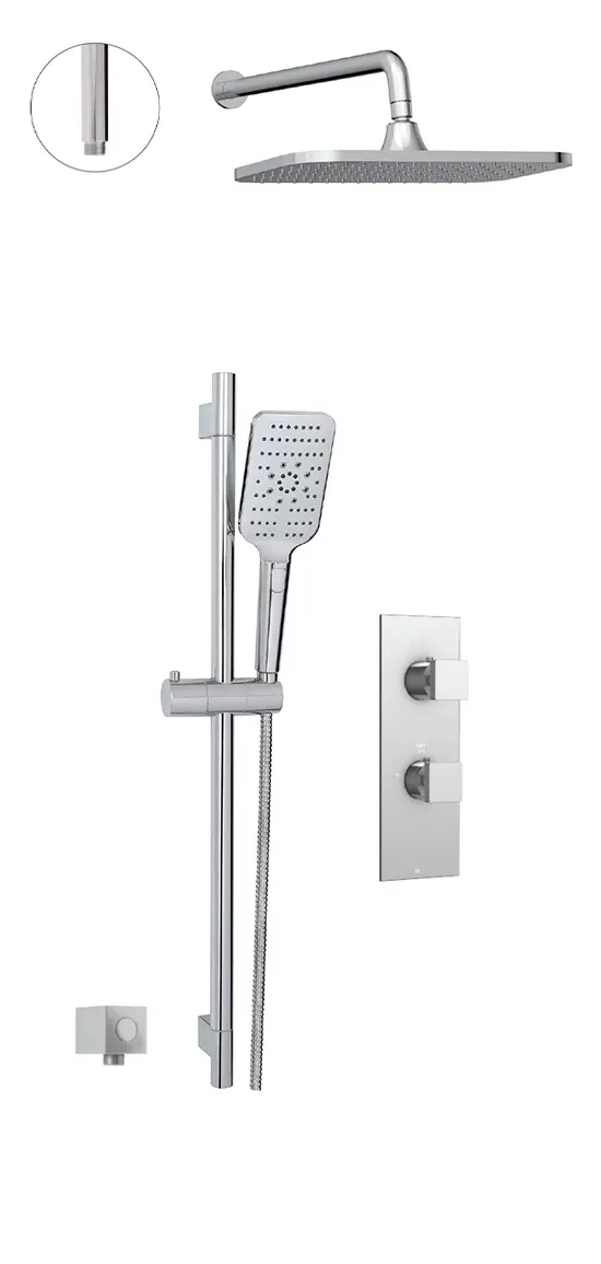 - 28″ adjustable shower rail with integrated handshower dock