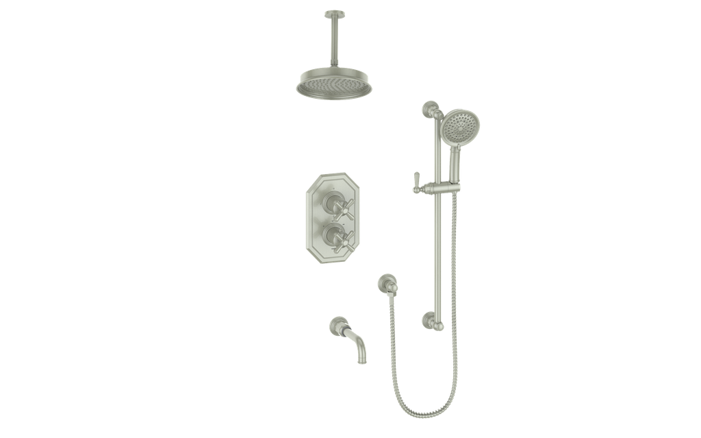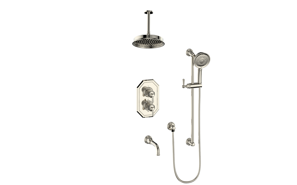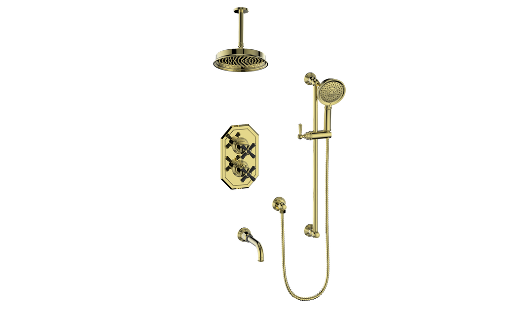 Perfect for spa‑inspired en‑suite bathrooms where ceiling‑mounted elegance, bathtub convenience, and multifunction showering combine for ultimate comfort