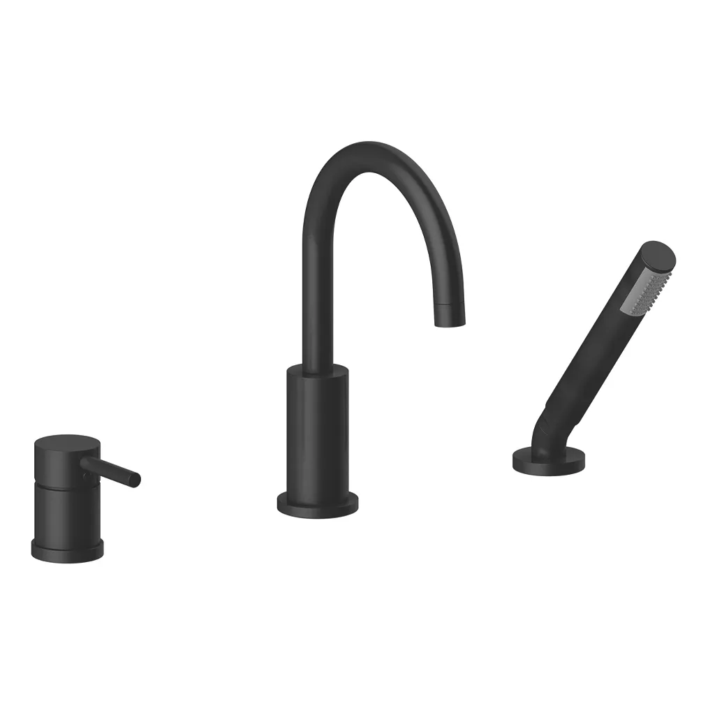 Bathrooms with bathtub deck installations seeking a refined tub filler with precise control and integrated hand shower functionality.