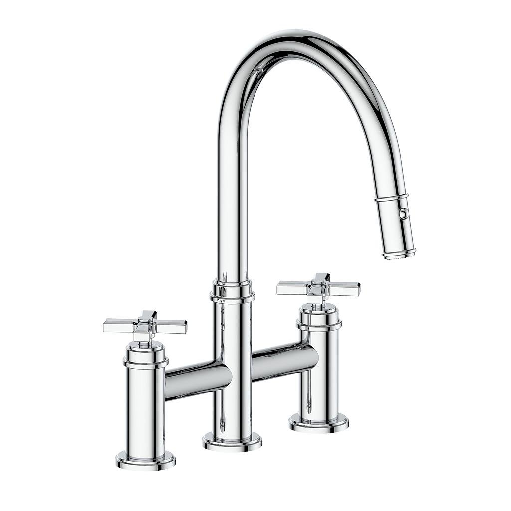 - Elegant two‑handle bridge design with angular T‑style handles