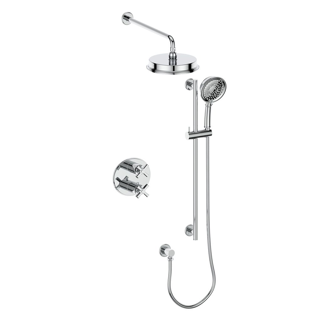 - Dual X-handle thermostatic control for precise temperature and flow