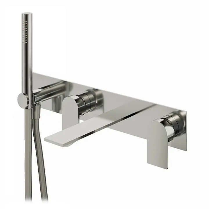 Homeowners and designers seeking a modern, architectural tub filling solution with dual precision controls and an integrated handshower for maximum versatility.